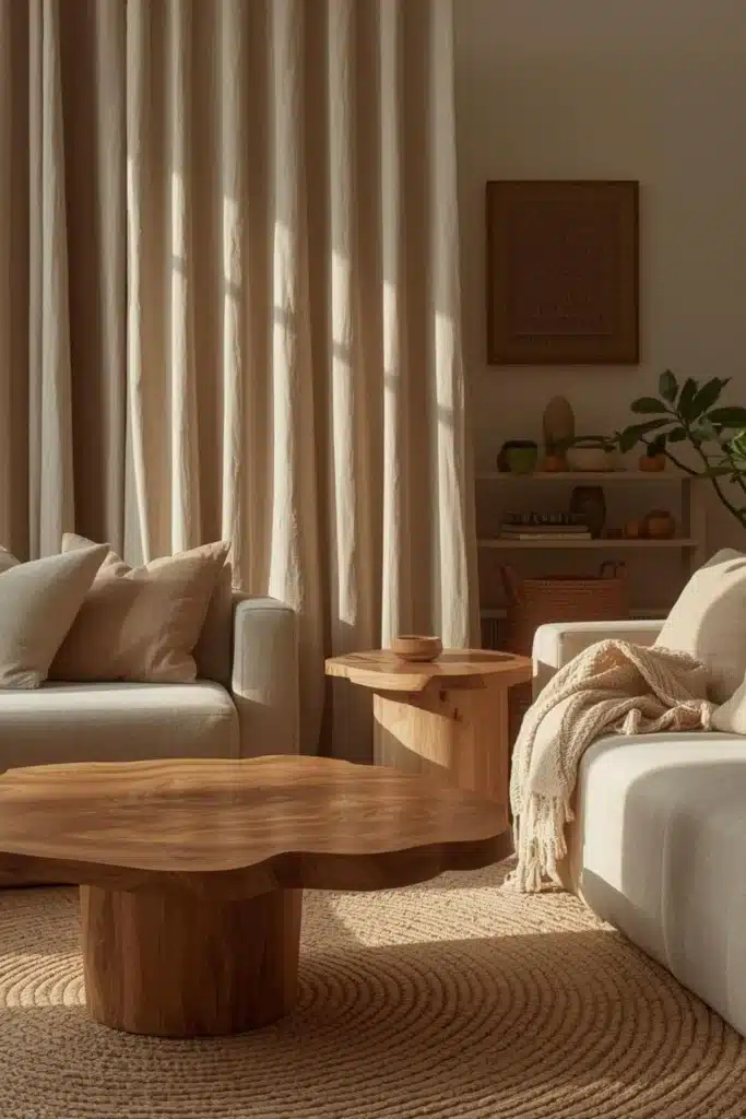 In neutral interiors, natural textures prevent rooms from feeling flat. A wooden table, linen curtains, or a woven rug adds depth while maintaining visual softness. This balance is key to cozy neutral interior design ideas that feel lived in rather than styled.