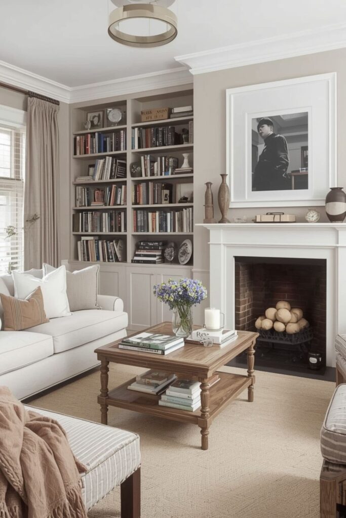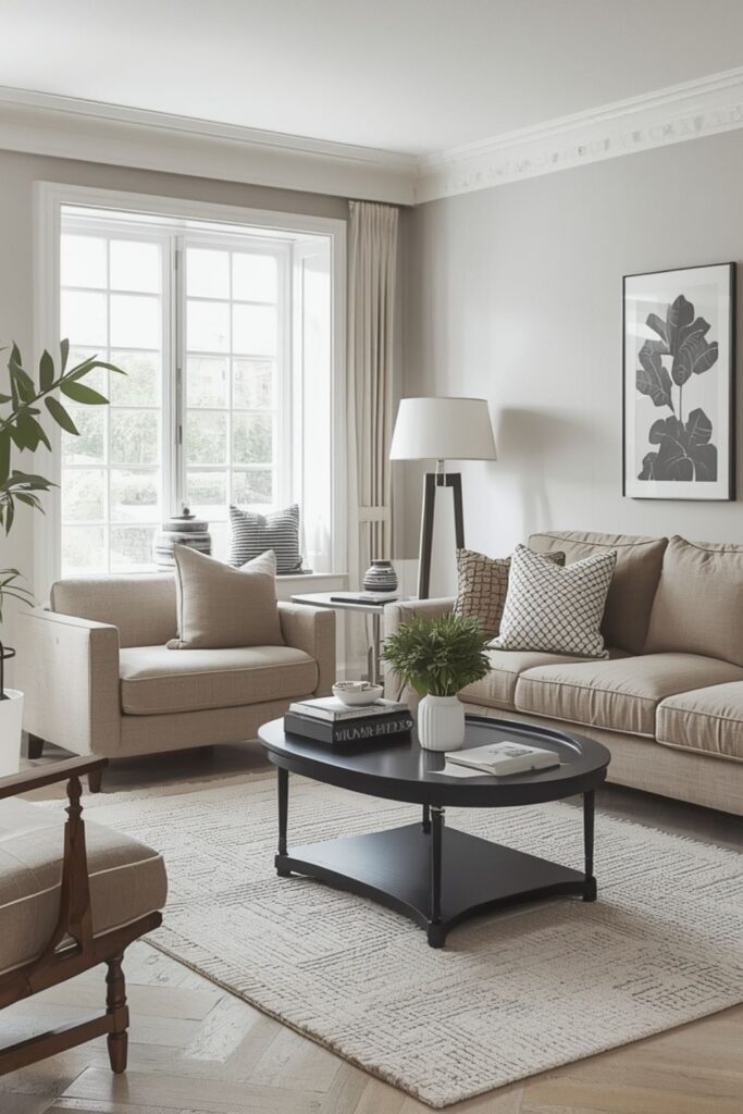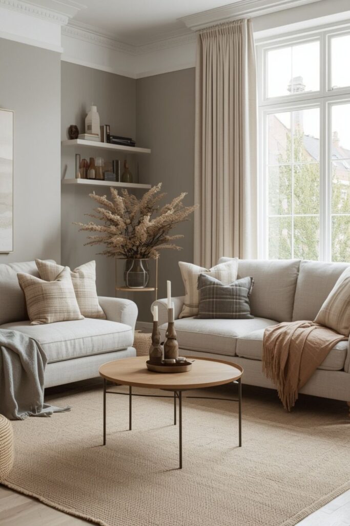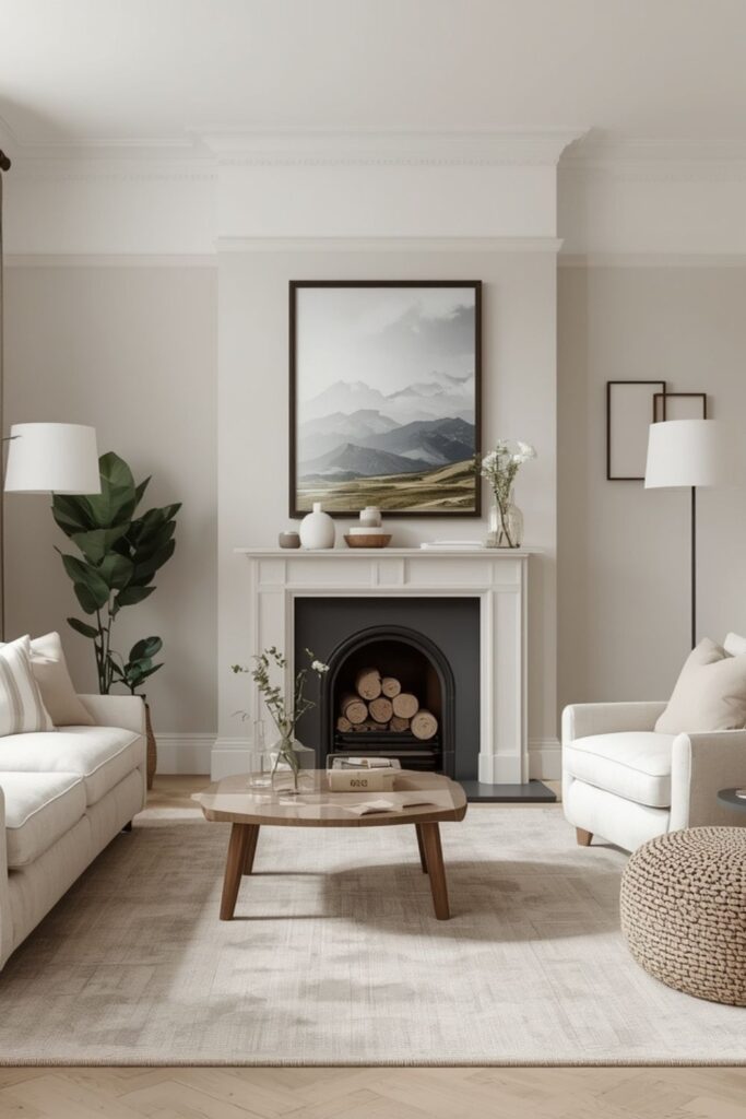 Neutral Living Room Ideas in UK style focus on warmth rather than emptiness. They combine greys, creams, beiges, and soft textures to create a welcoming atmosphere. The goal is not to remove character, but to let it show quietly. The ideas below are written as real living room moments, helping you imagine how neutral design works emotionally and practically in everyday UK homes.