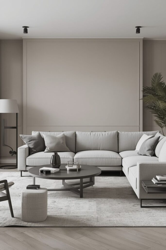 Modern grey neutral living room ideas focus on clean lines and simplicity. Furniture shapes are kept soft and minimal, allowing the neutral palette to shine. This style works well in contemporary UK apartments and renovated homes.