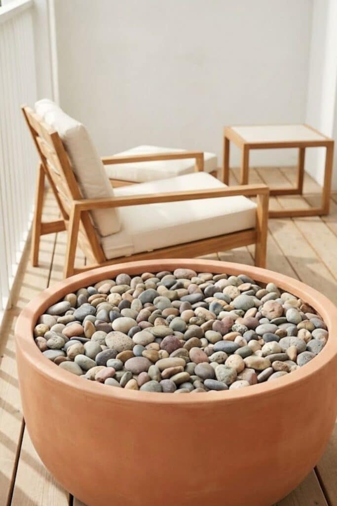 In real outdoor spaces, stone filled planters create a grounded, natural feel. They pair well with wooden furniture and neutral surroundings. This option is ideal for people who want decoration without maintenance and still want a calm, earthy atmosphere.