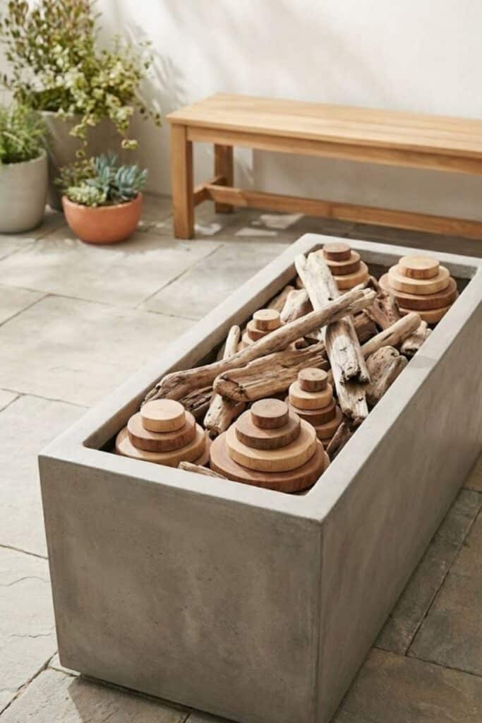 Wood brings instant warmth to outdoor spaces. Small planters can be filled with wooden blocks, driftwood pieces, or even neatly stacked wooden discs. This creates a rustic yet modern look.