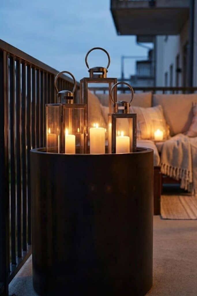 Using planters as a base for lanterns turns them into functional decor pieces. This approach fits well with small planter decoration ideas outdoor diy projects, especially for balconies where space is limited but atmosphere matters.