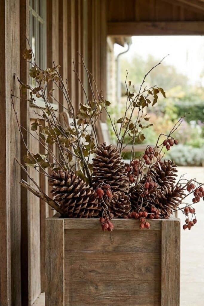 Planters can hold seasonal items such as pinecones, dried branches, or weather resistant decorative elements. This allows the look to change throughout the year without effort.