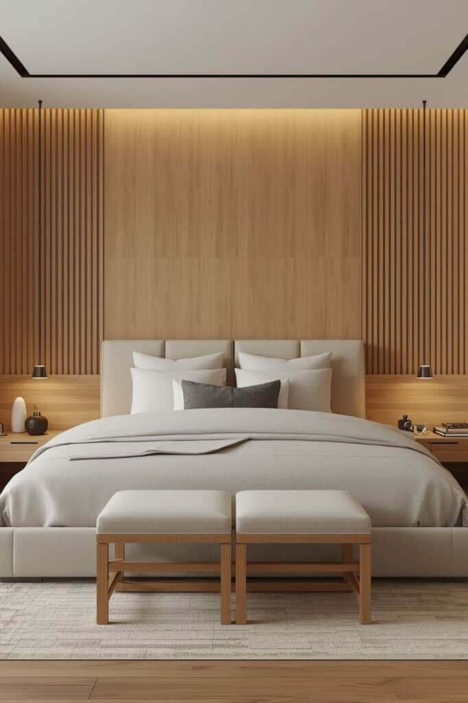 Wood is central to tatami bedroom style. Light and medium wood tones bring warmth without heaviness. In Malaysian interiors, wood also helps balance modern finishes like tiles or concrete walls. The natural texture softens the space and makes it feel welcoming.