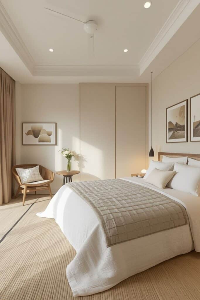 Neutral palettes also allow tatami mats and wooden furniture to stand out naturally. When walls and fabrics remain soft, the bedroom feels restful throughout the day. This colour approach supports better sleep and a calmer emotional environment.