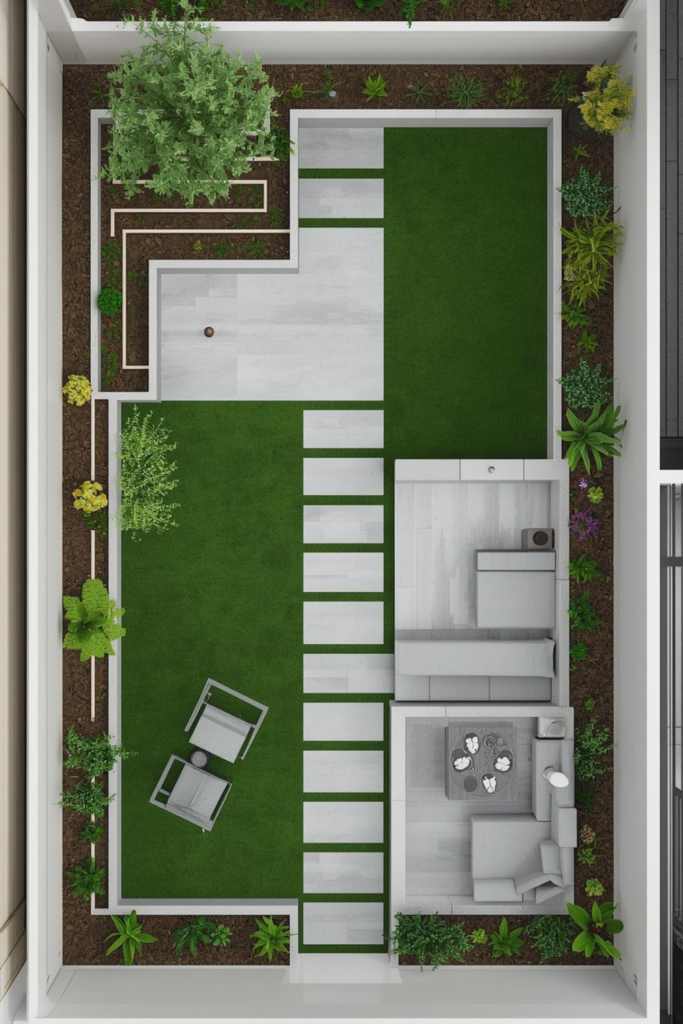 If you prefer grass, keep it small. A compact lawn can add softness without becoming a maintenance burden. Limiting lawn size keeps mowing and watering manageable.