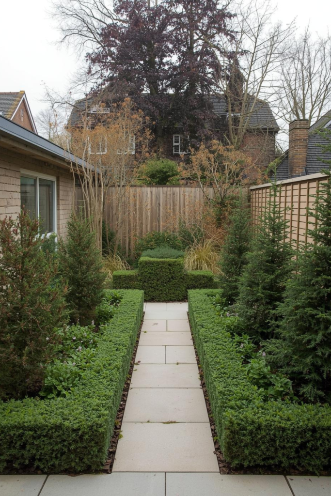Shrubs, grasses, and compact evergreens work well in modern small garden ideas. They keep the garden looking tidy even in winter. This is especially useful in UK gardens where seasonal change can leave spaces looking bare.