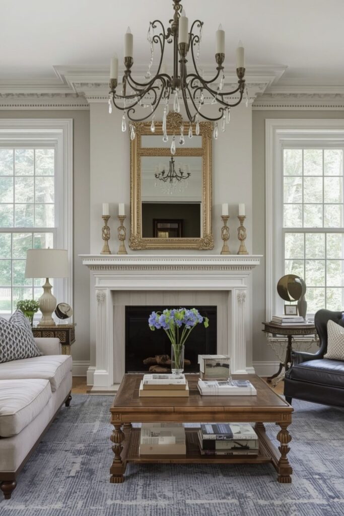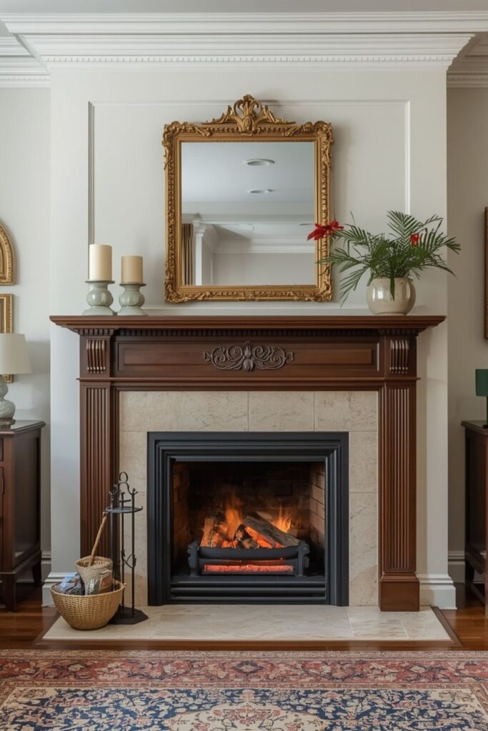 Victorian home design ideas today avoid heavy mantel displays. This restraint keeps the room grounded and prevents visual clutter. The fireplace remains a calm anchor rather than a decorative statement.